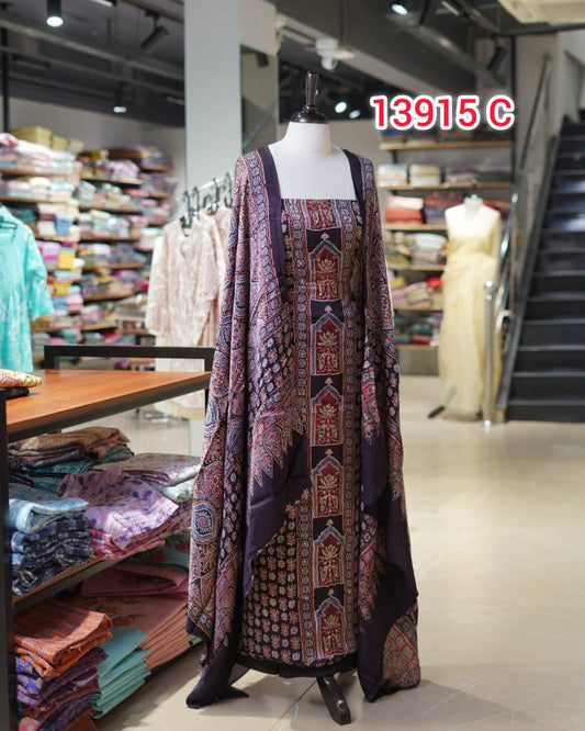 Pure Modal Silk Hand Block Unstitched Salwar Set | Search Code 13915