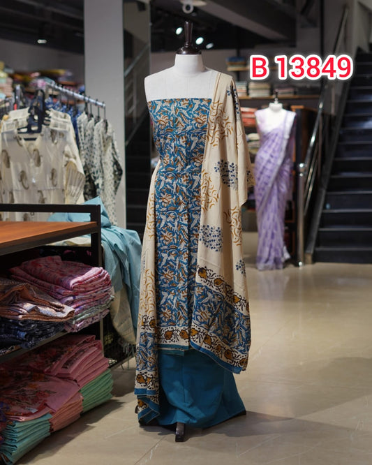 Cotton Hand Block Print Unstitched Salwar Set | Search Code 139201
