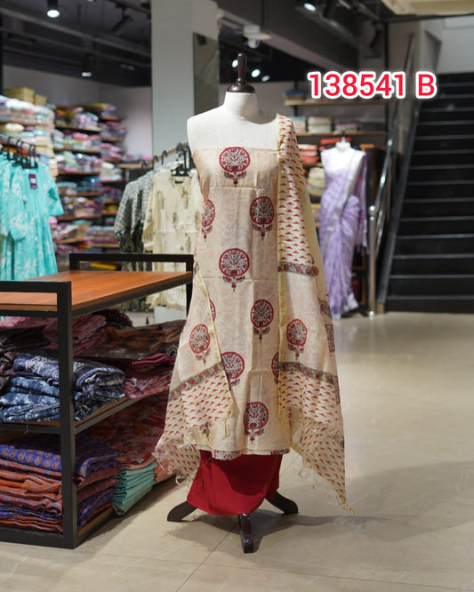 Pure Chanderi Silk Hand Block Unstitched Salwar Set | Search Code 138541